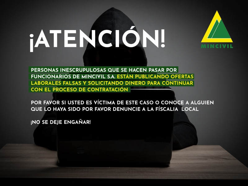MINCIVIL – TOPCO es un Grupo de empresas Colombianas que cuenta con mas de 40 años de experiencia en el desarrollo de proyectos de infraestructura en el territorio nacional, logrando posicionarse en el sector de la ingeniería y destacándose por sus valores corporativos enfocados en el cumplimiento, la calidad y la responsabilidad socio – ambiental convirtiéndola en una empresa líder y confiable en el sector.